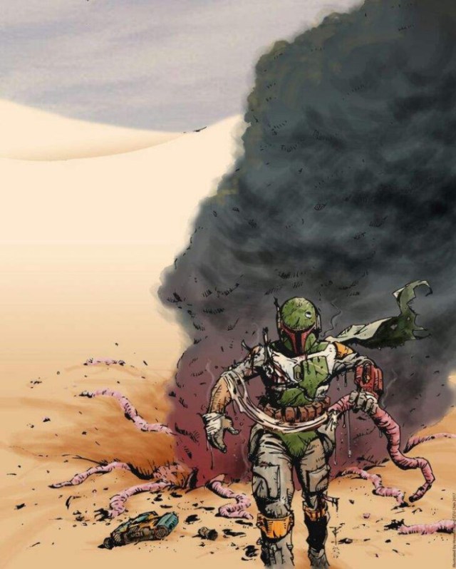 Здравствуйте, я хочу вам рассказать, что произошло после событий шестого Эпизода звёздных войн, после того как охотник за головами Боба Фетт упал в пасть к сарлакку